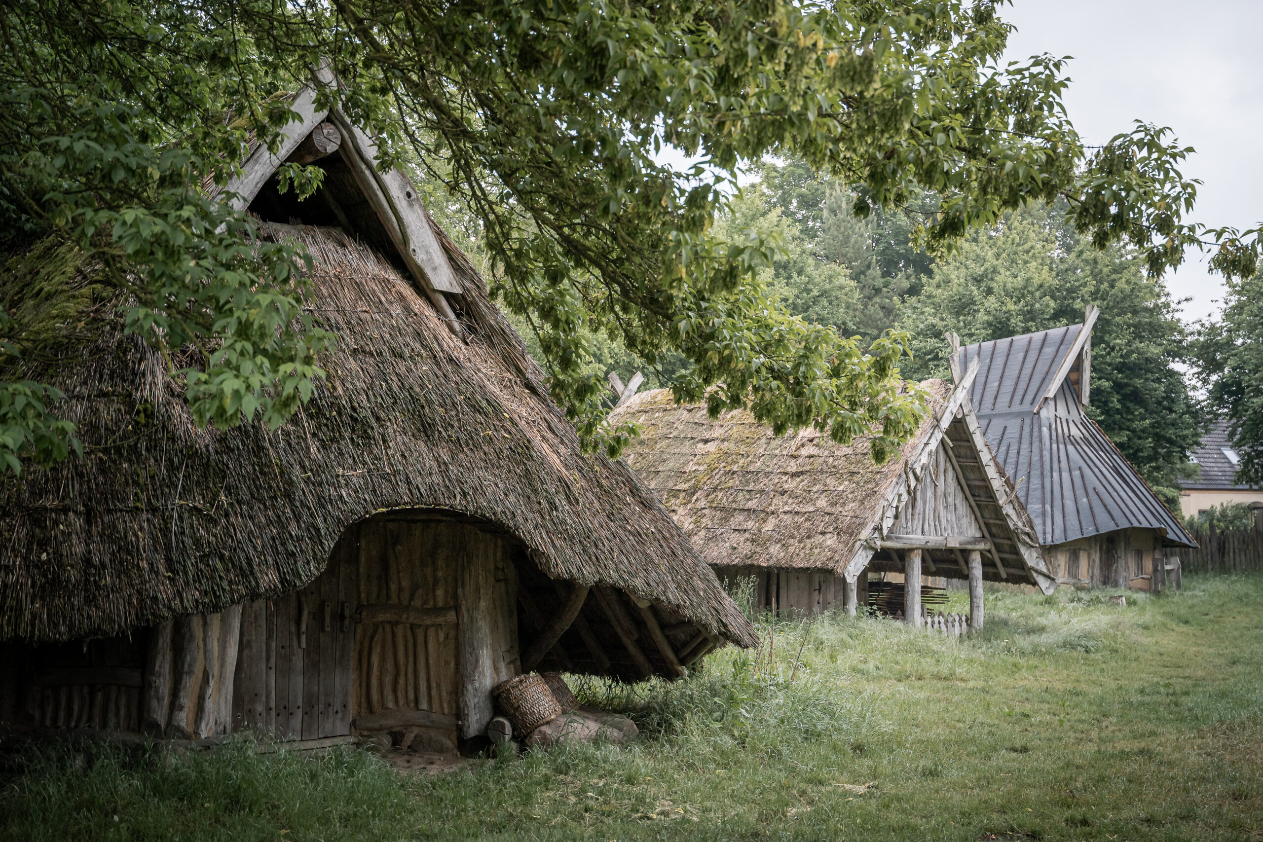 Es ist besonders, dieses alte Slawendorf in Passentin, Mecklenburg Vorpommern. Reetgedeckte Hütten ohne Strom, Bad, Wasser aber mit viel Holz und Staub. Ein Palisadenzaun drum herum garantiert Abgeschiedenheit. Vor dem Tor Feld und Wiese. Und die Gnade, nirgendwo Netz zu haben.